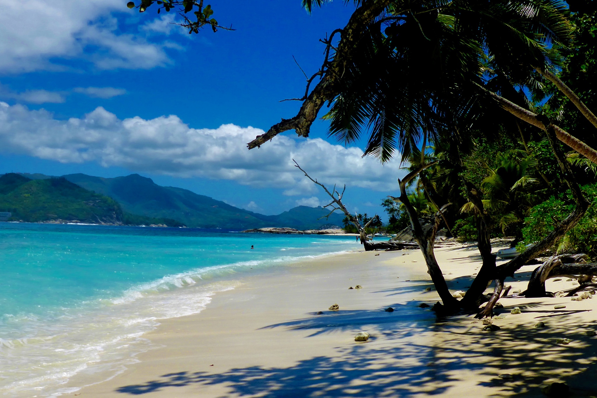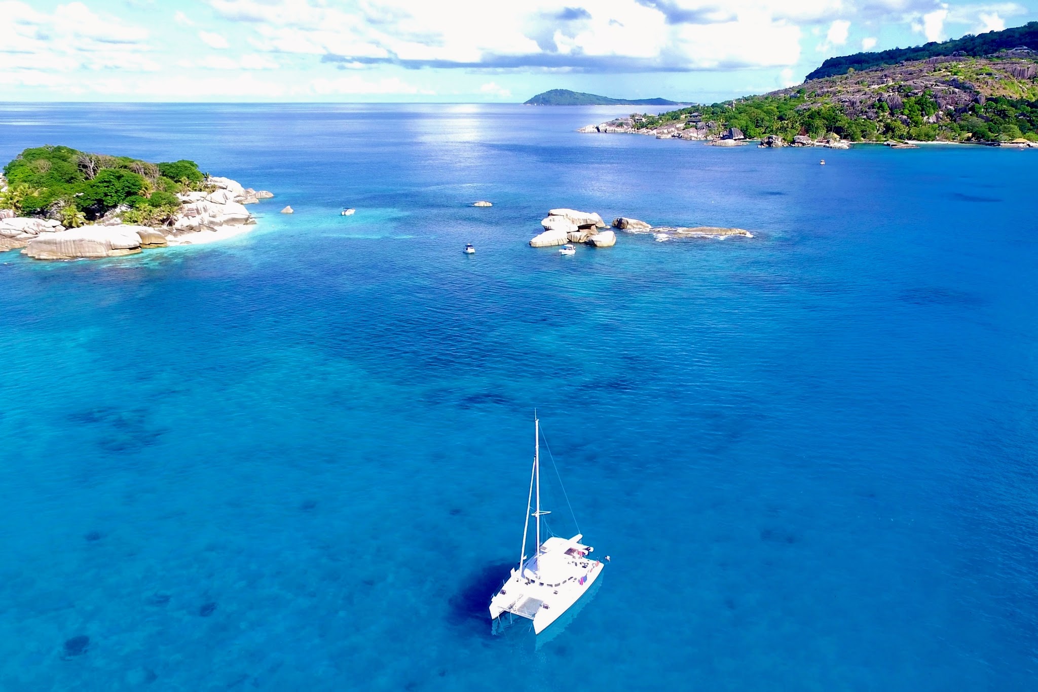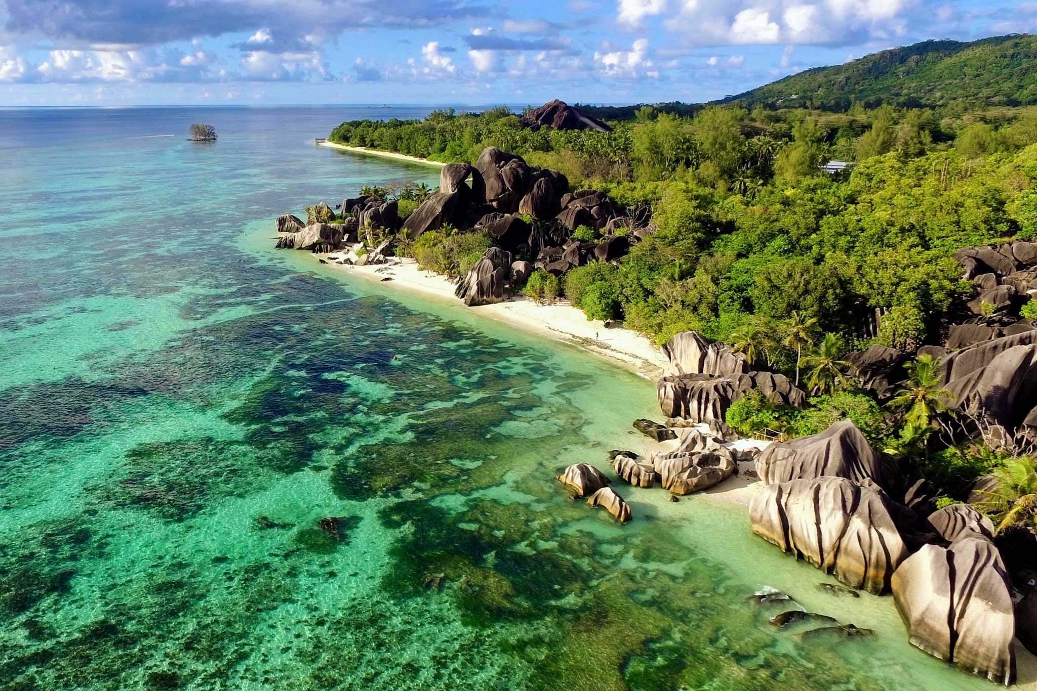 Palmengesäumte Strände, atemberaubend schöne Ankerbuchten, warmes Wasser, Korallen, tropische Fauna aller Art, bizarre Granitblockformationen, Schnorcheln, Fischen …und diese Wasserfarbe… All das sind die Seychellen und noch so viel mehr.