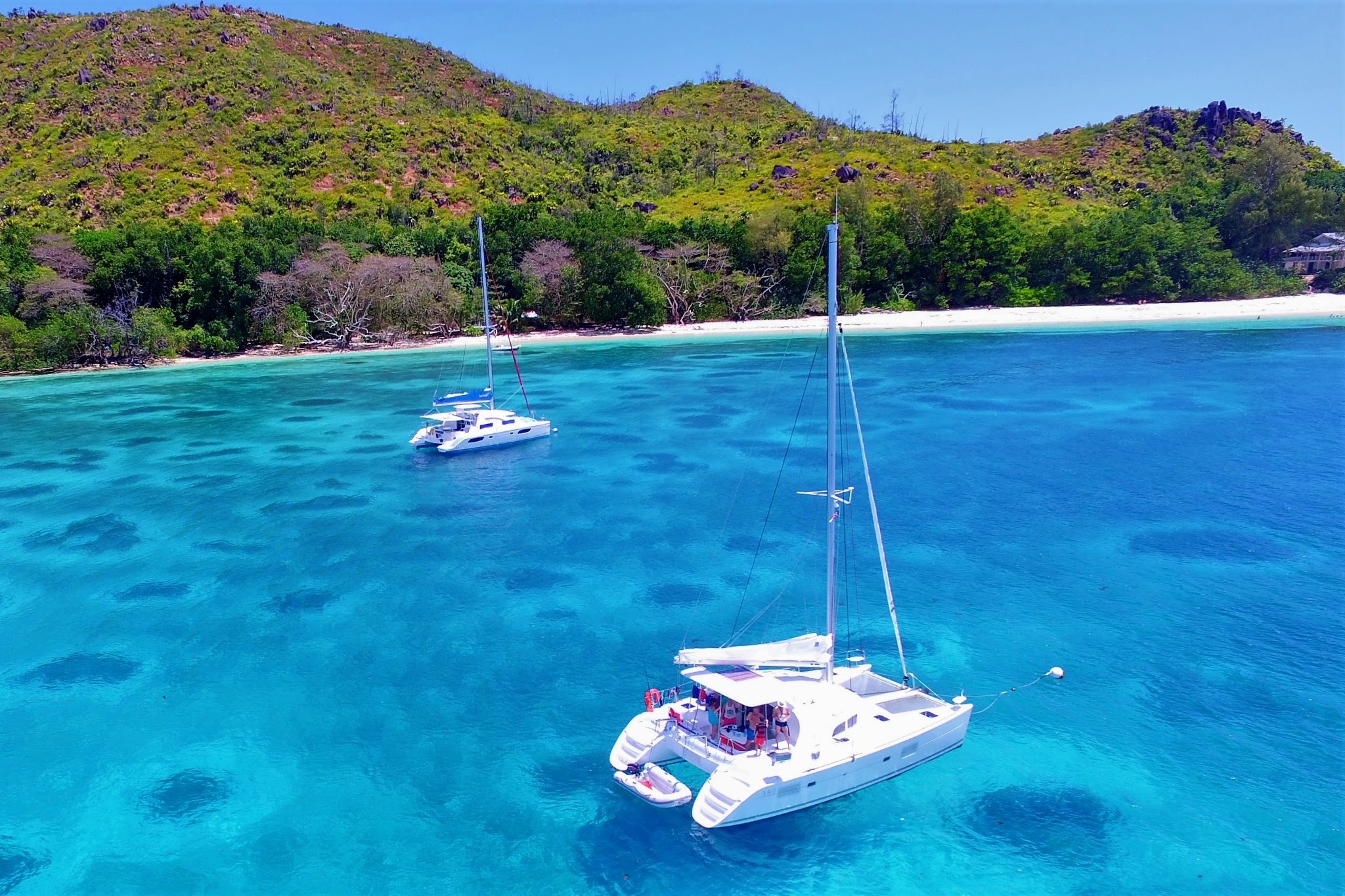 Mit 5 großzügigen Doppelkabinen, jeweils mit privatem Bad, bietet die Yacht Raum und Privatsphäre für bis zu 10 Gäste. Der weitläufige Salon mit Panoramaausblick, die elegante Flybridge mit Lounge-Bereich sowie das große Cockpit schaffen ein Gefühl von Weite und Freiheit – ideal, um die Seychellen von ihrer schönsten Seite zu genießen.
